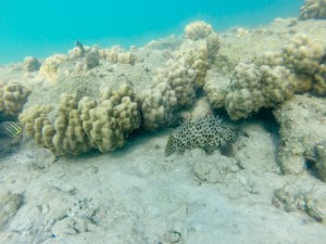 V sredini slike, rahlo desno je riba, če je kdo ne najde, ker misli, da je to kamen.