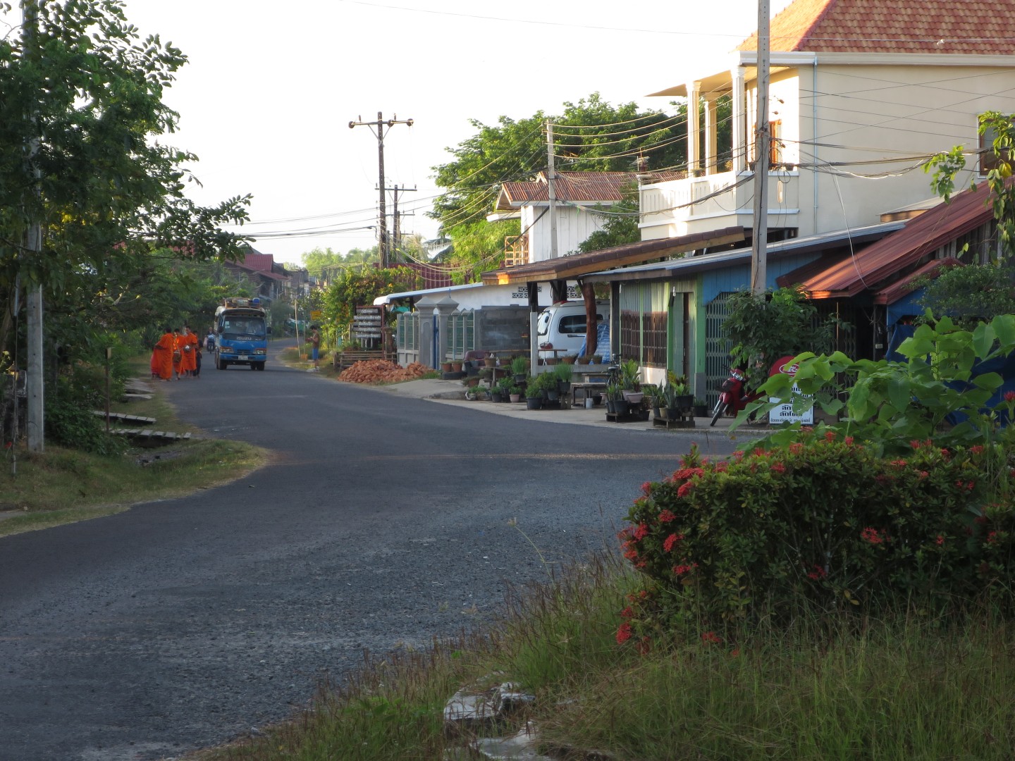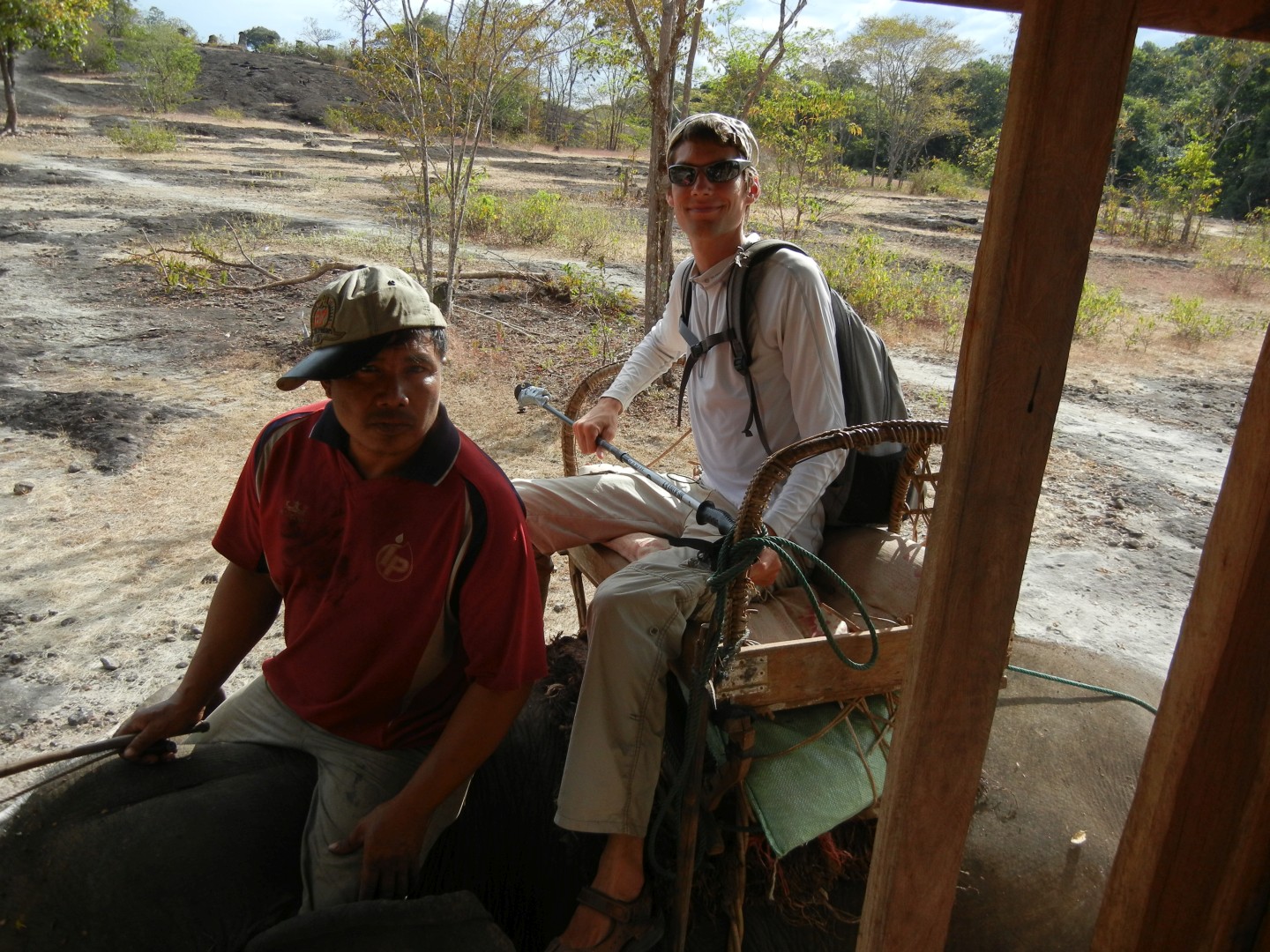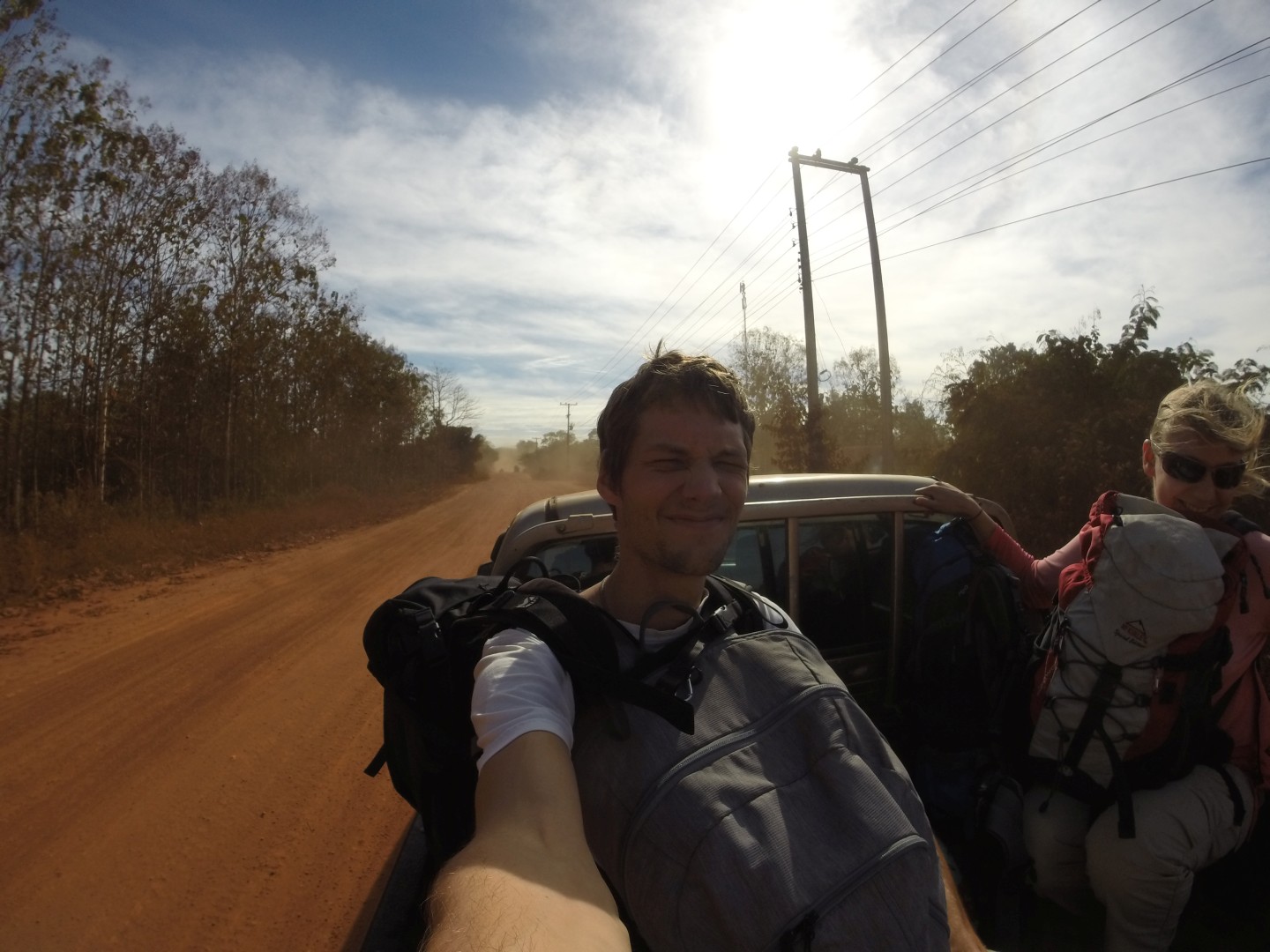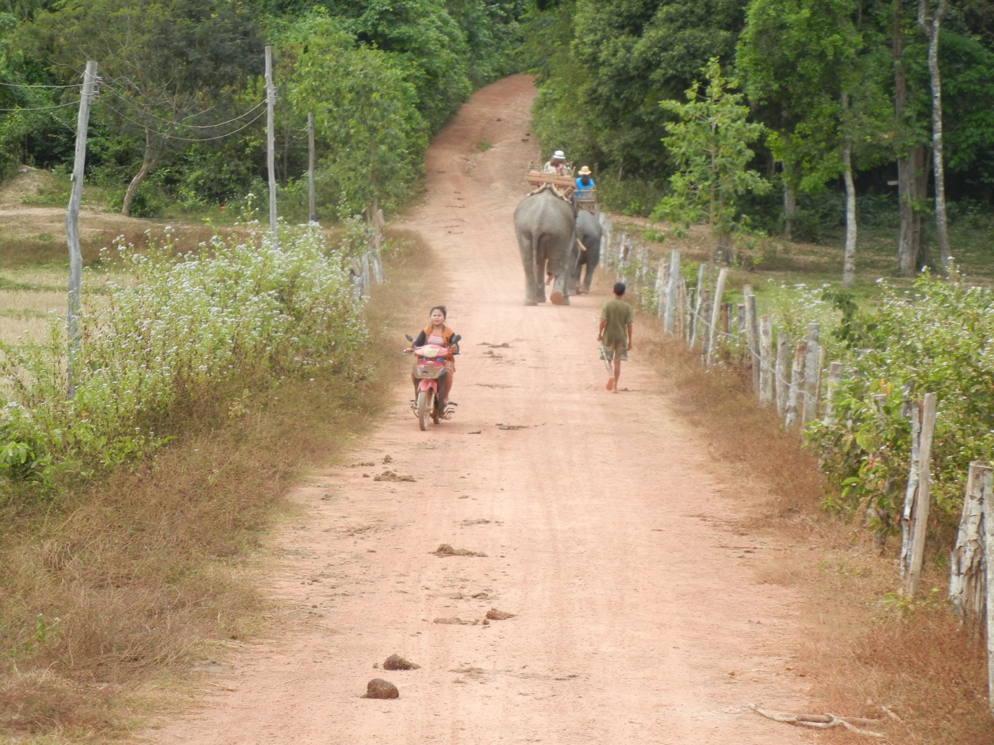 Iz Kratie sva se odpeljala v Sen Monorom. V Kambodži delujejo prevozi tako, da se zmeniš za prevoz v prenočišču, kjer spiš. Povejo ti, da te bo kombi pobral med 6:00 in 8:00, tako da vstaneš zelo zgodaj. Kombi verjetno začne s pobiranjem po mestu ob 6:00, ampak ponavadi malo kasneje, ti pa čakaš, da pride do tebe. Večinoma se s tem kombijem potem pelješ naprej, tokrat pa smo se peljali samo do drugega kombija, s katerim smo šli naprej. V drugem kombiju je bilo ogromno komarjev. V kombi najprej dajo vse turiste, potem pa zapolnijo vsa prosta mesta z domačini, ki zelo verjetno plačajo manj. Poleg tega sigurno obstajajo še drugi načini potovanja za domačine, ampak jih midva nisva ugotovila.