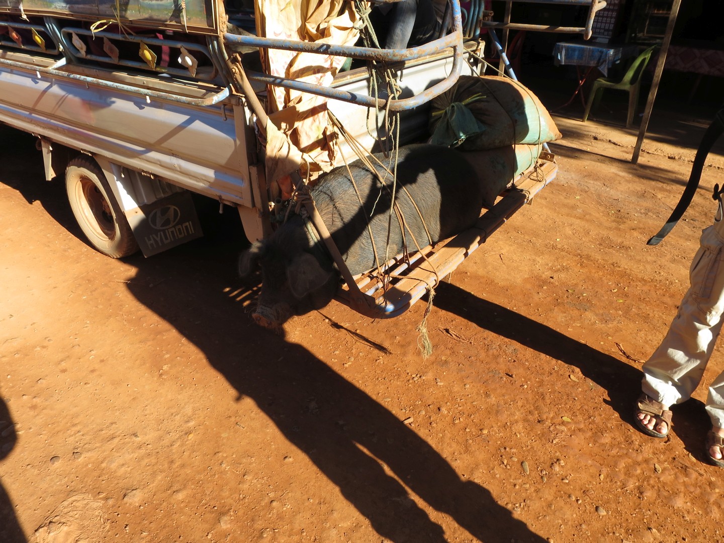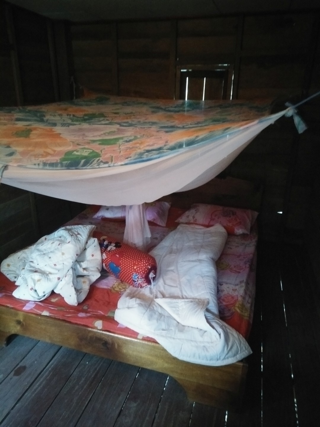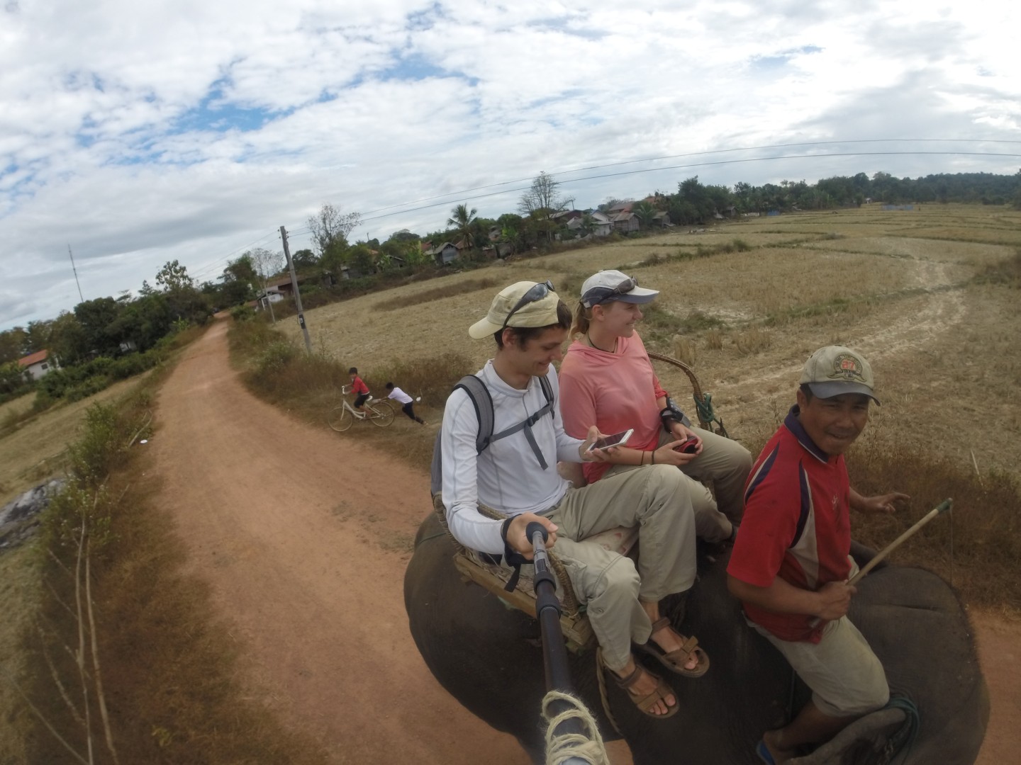 Iz Kratie sva se odpeljala v Sen Monorom. V Kambodži delujejo prevozi tako, da se zmeniš za prevoz v prenočišču, kjer spiš. Povejo ti, da te bo kombi pobral med 6:00 in 8:00, tako da vstaneš zelo zgodaj. Kombi verjetno začne s pobiranjem po mestu ob 6:00, ampak ponavadi malo kasneje, ti pa čakaš, da pride do tebe. Večinoma se s tem kombijem potem pelješ naprej, tokrat pa smo se peljali samo do drugega kombija, s katerim smo šli naprej. V drugem kombiju je bilo ogromno komarjev. V kombi najprej dajo vse turiste, potem pa zapolnijo vsa prosta mesta z domačini, ki zelo verjetno plačajo manj. Poleg tega sigurno obstajajo še drugi načini potovanja za domačine, ampak jih midva nisva ugotovila.