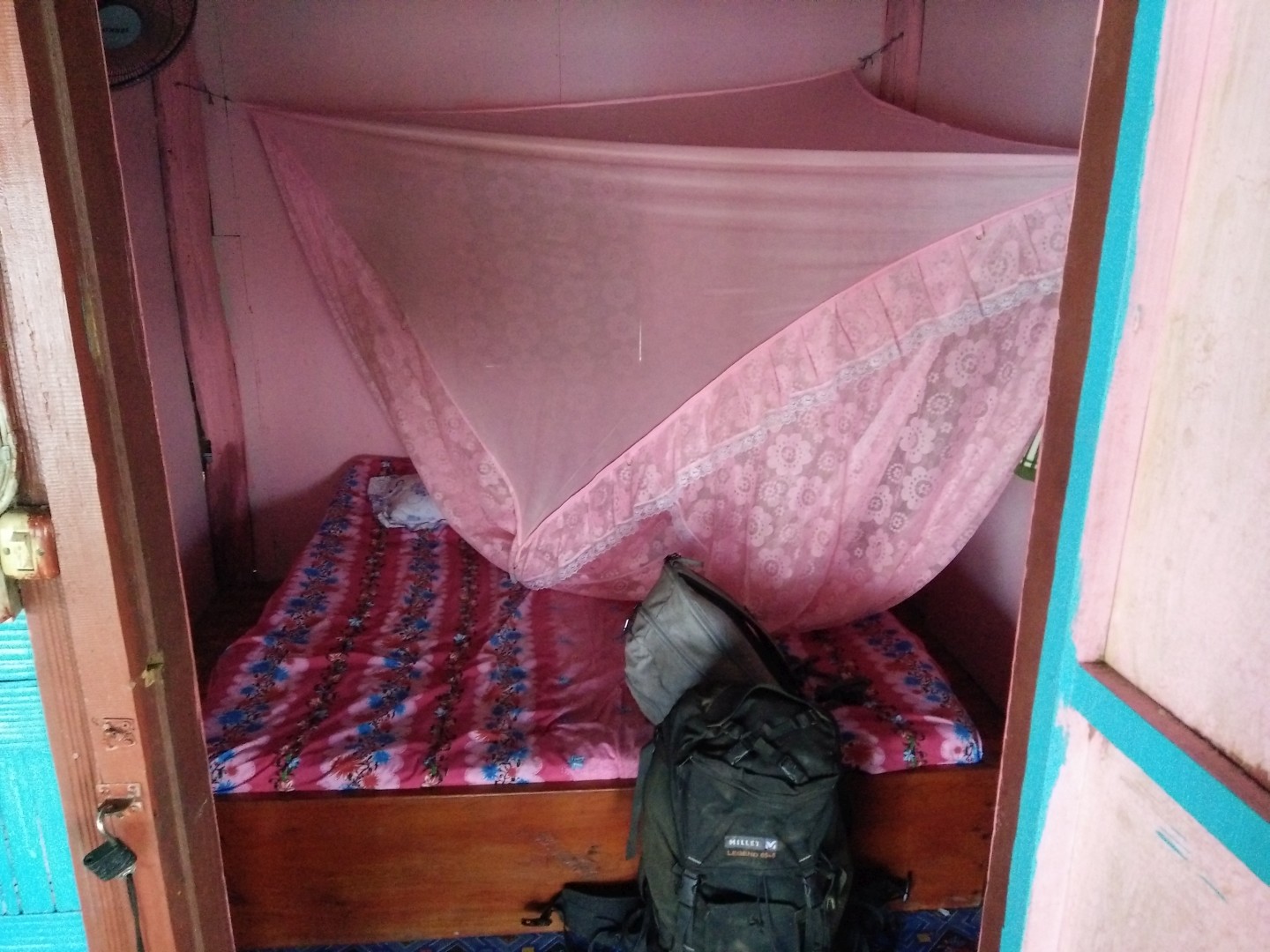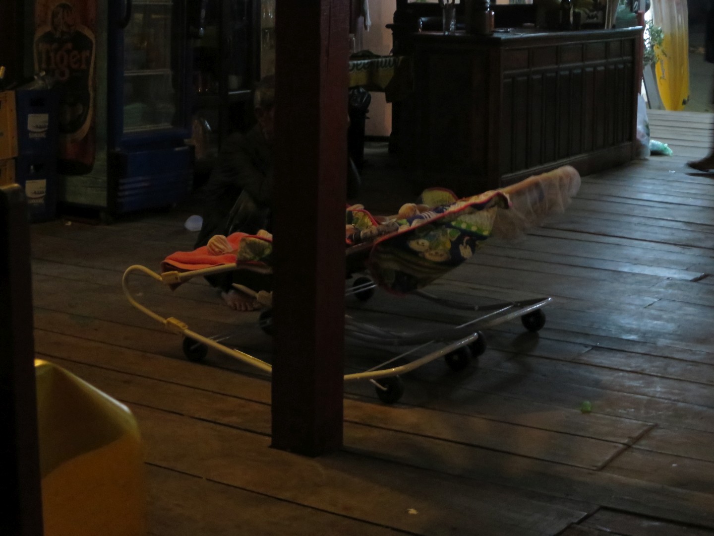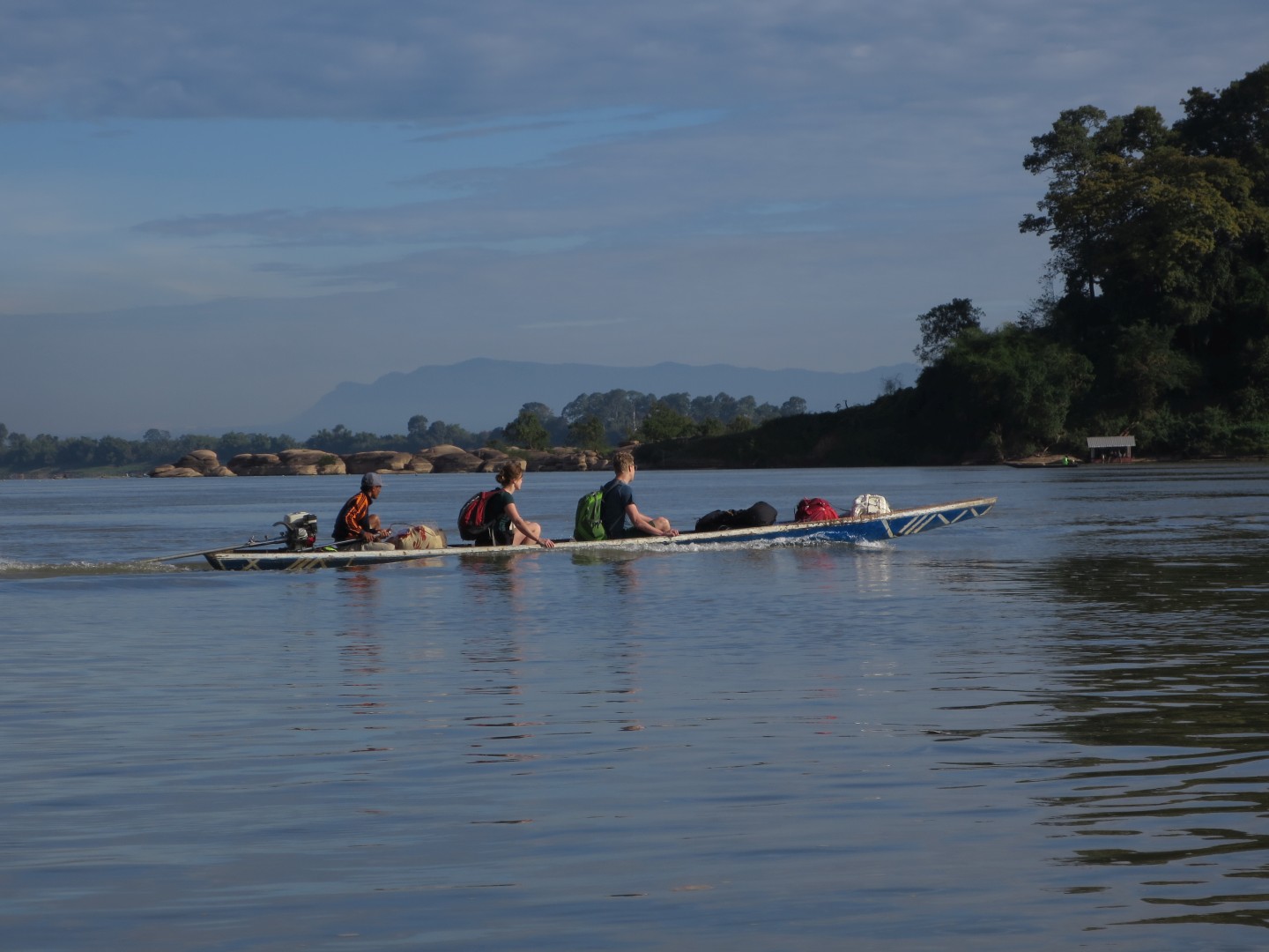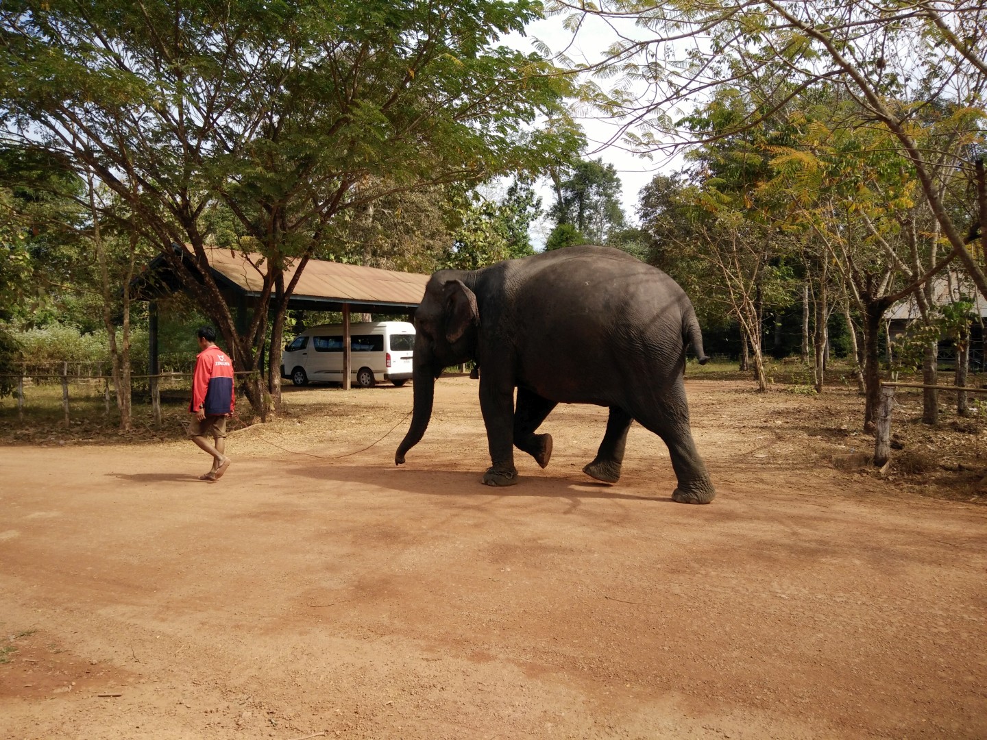 Iz Kratie sva se odpeljala v Sen Monorom. V Kambodži delujejo prevozi tako, da se zmeniš za prevoz v prenočišču, kjer spiš. Povejo ti, da te bo kombi pobral med 6:00 in 8:00, tako da vstaneš zelo zgodaj. Kombi verjetno začne s pobiranjem po mestu ob 6:00, ampak ponavadi malo kasneje, ti pa čakaš, da pride do tebe. Večinoma se s tem kombijem potem pelješ naprej, tokrat pa smo se peljali samo do drugega kombija, s katerim smo šli naprej. V drugem kombiju je bilo ogromno komarjev. V kombi najprej dajo vse turiste, potem pa zapolnijo vsa prosta mesta z domačini, ki zelo verjetno plačajo manj. Poleg tega sigurno obstajajo še drugi načini potovanja za domačine, ampak jih midva nisva ugotovila.