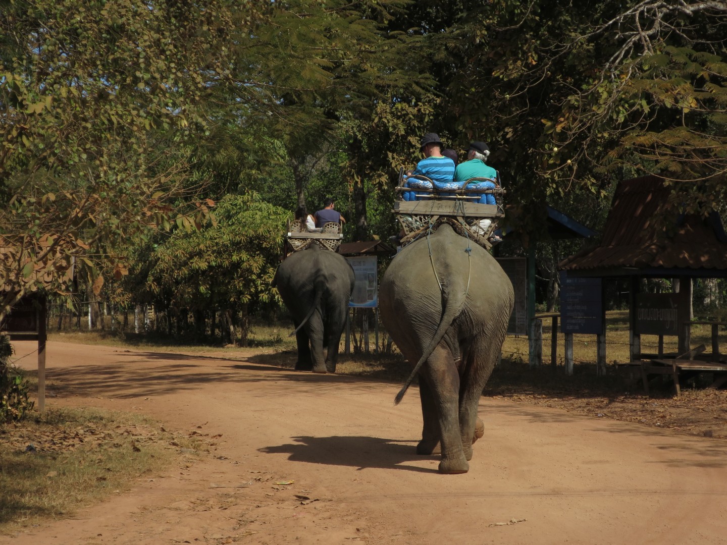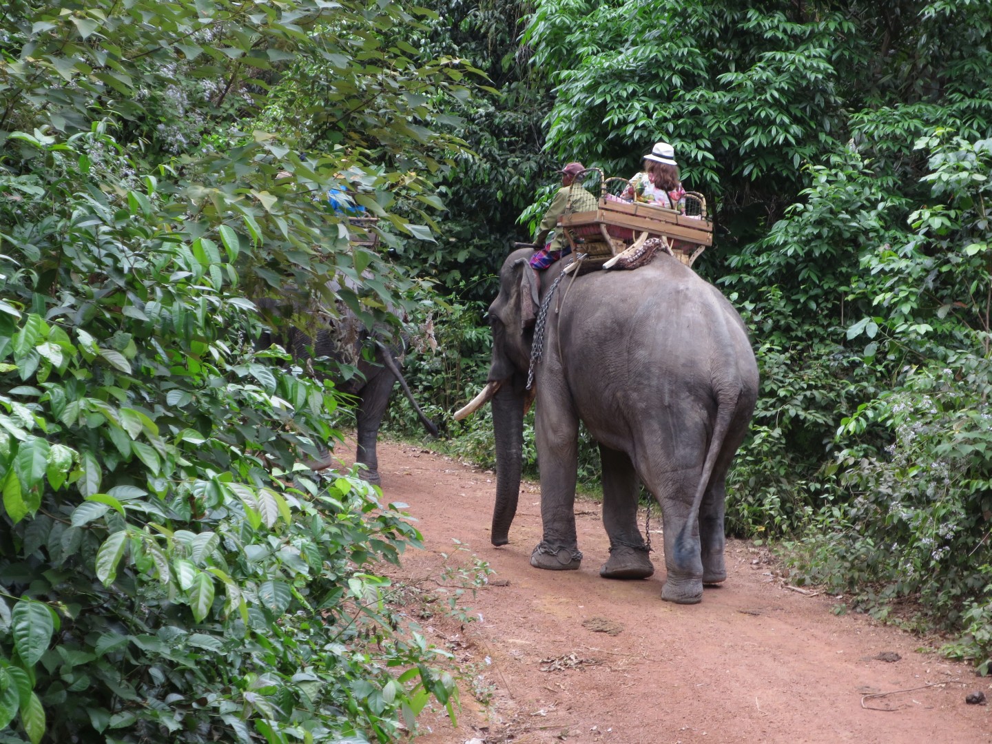 V Sen Monouromu sta vsaj dva rezervata za slone. Te zadeve delujejo tako, da kupijo ali najamejo kup zemlje, kupijo bivše delovne slone (kmetijske ali turistične) in jih nastanijo na svoji zemlji. Pri tem lepo skrbijo za slone in turistom veliko zaračunajo za razne aktivnosti. Pri nas je bilo 5 slonic, ki smo jih božali, hranili z bananami in jih umivali (beri: se z njimi kopali v reki). Slone nadzoruje skupina varnostnikov, ki jih varujejo in jim preprečujejo, da bi pobegnili iz določenega območja. Poleg tega jih usmerjajo, da se s turisti srečajo na stalnih lokacijah. Obvezna aktivnost je tudi poslušanje predavanja o tem, kako so oni edini, ki pravilno skrbijo za slone ter jih nikamor ne silijo (razen očitno na vnaprej določene lokacije, kjer se srečajo s turisti) in da so vse ostale organizacije nateg.