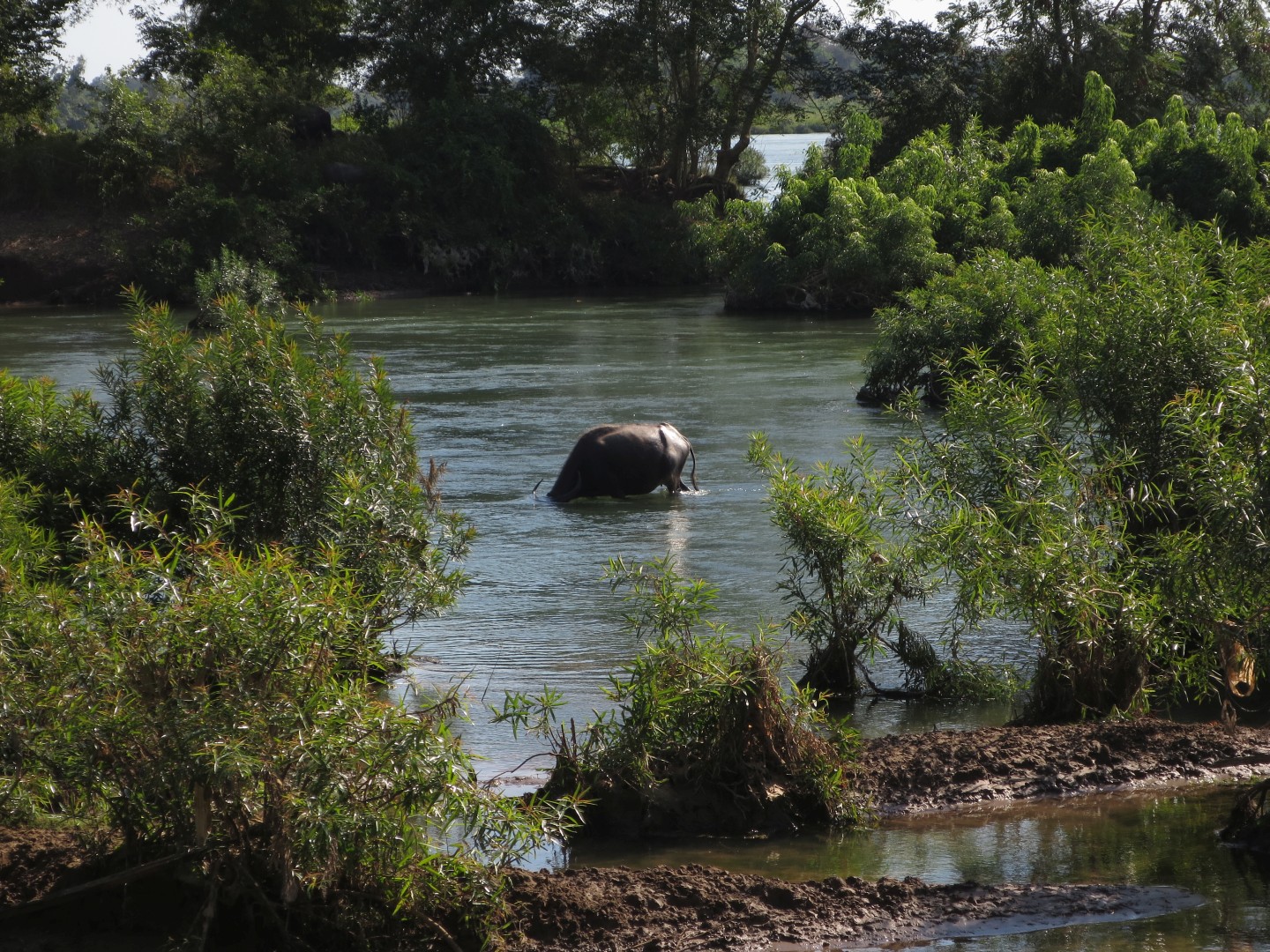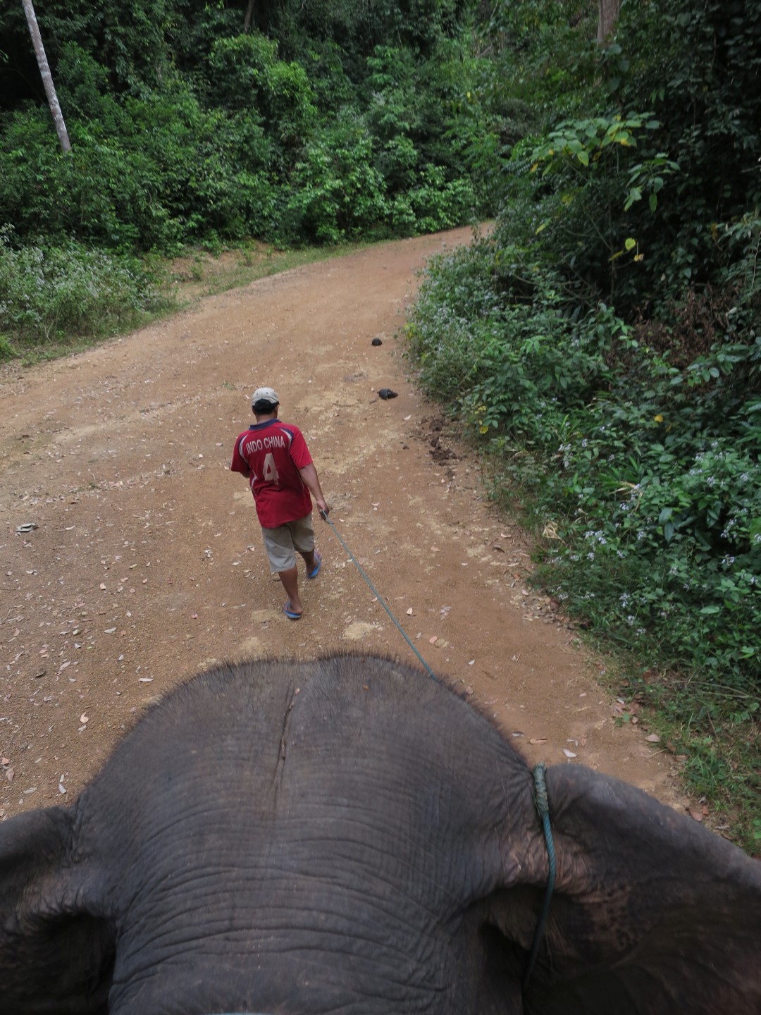 - Nazaj nismo šli čez most, ampak smo prebredli reko. Slonica pa z nami.