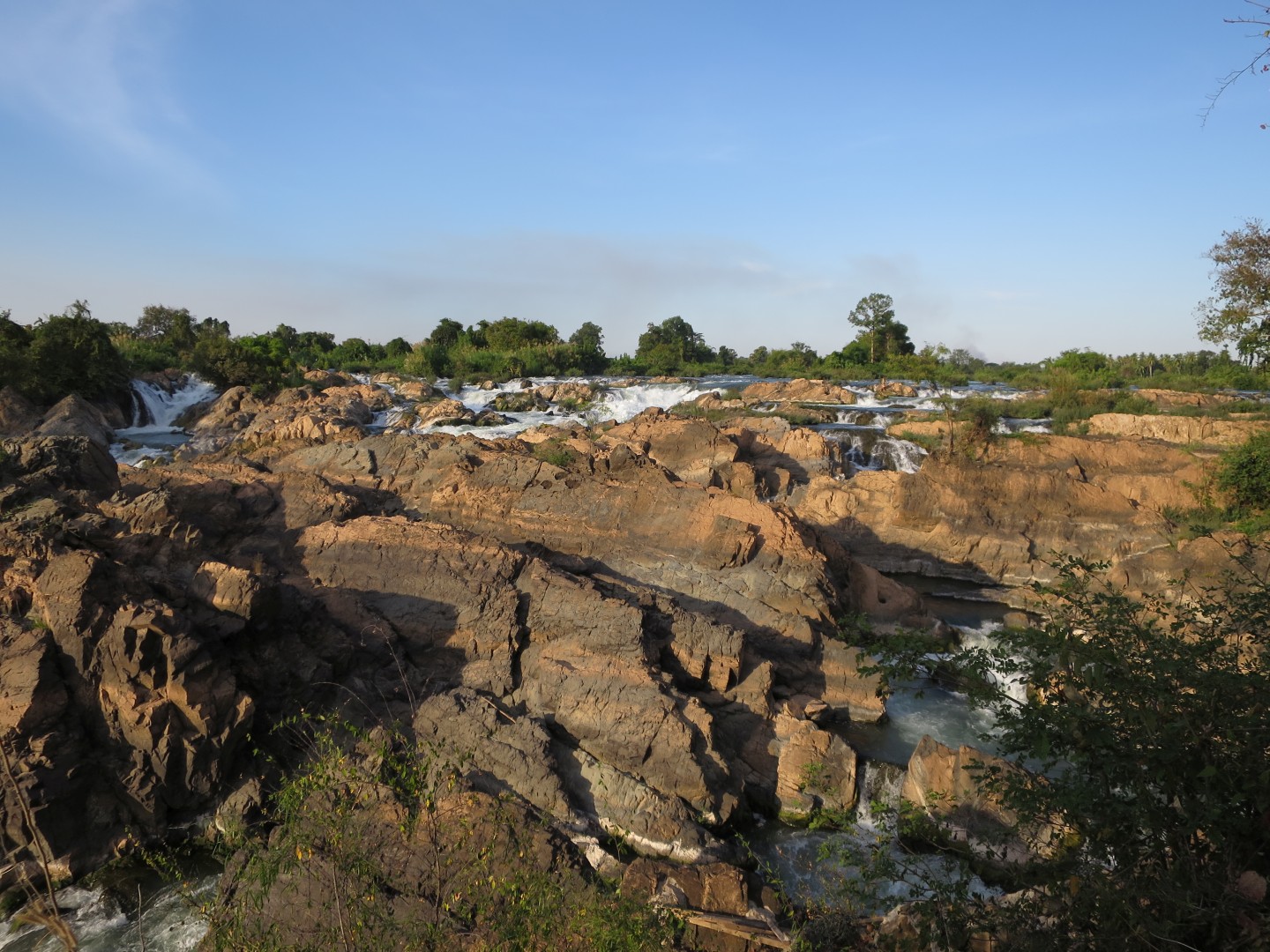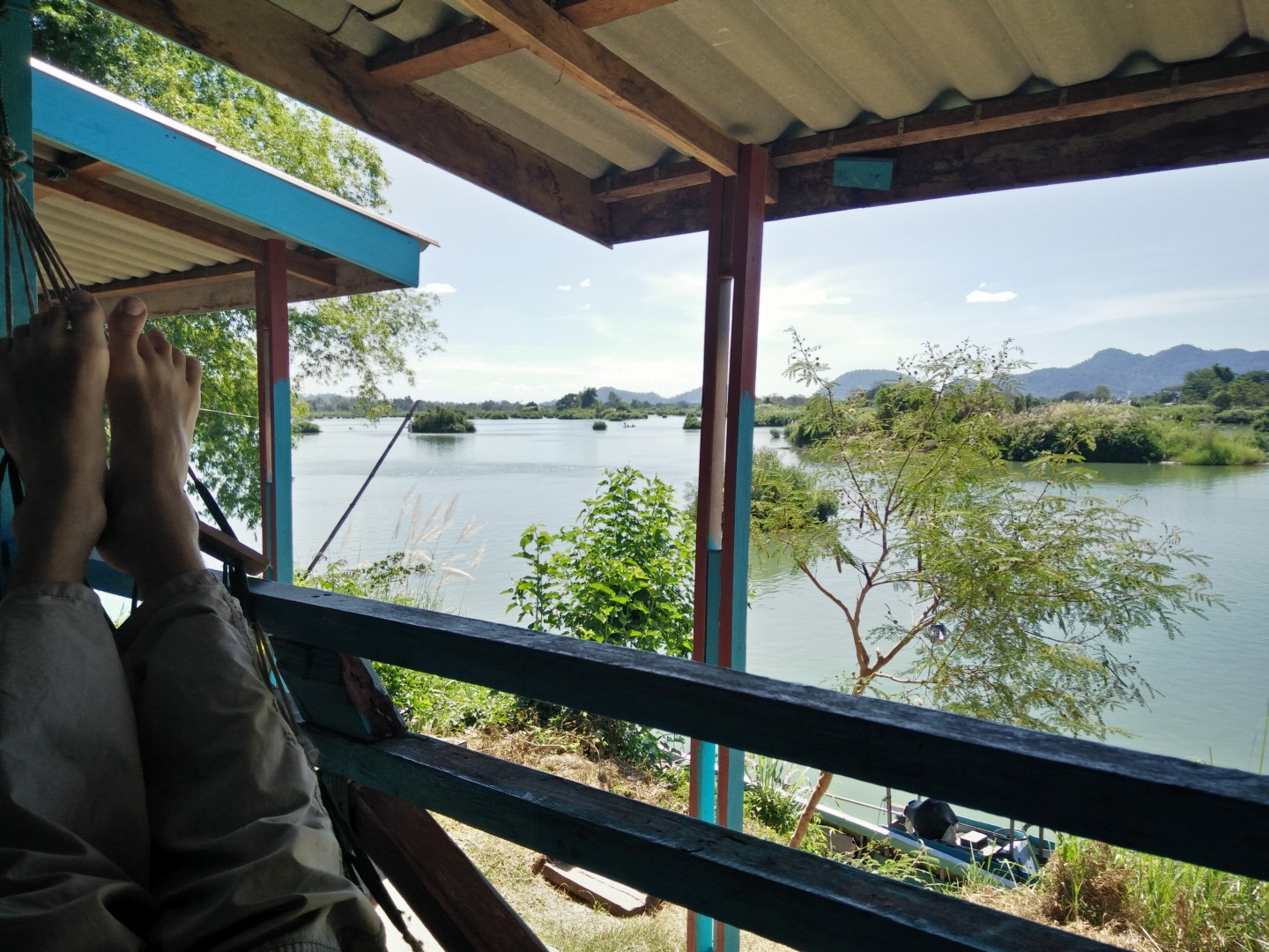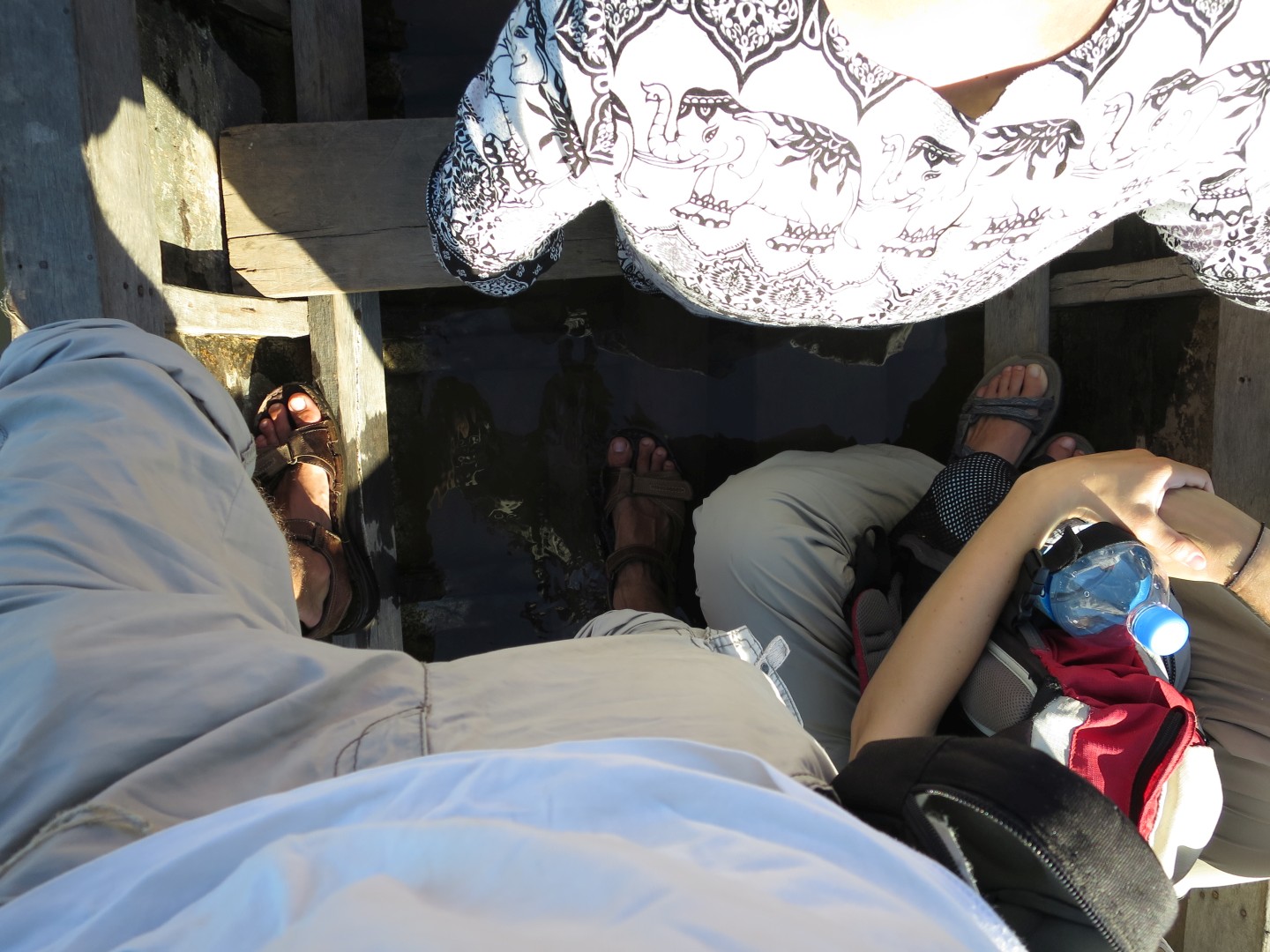 Midva sva v kompletu s obiskom slonov kupila še spanje v visečih mrežah na pokritem balkonu hiške v gozdu in trekking naslednji dan. Ker sva to počela med božičem in novim letom, nas je bilo veliko – okrog 15 pri slonih in okrog 10 na trekingu. Hodili smo po okoliški džungli, ki je čisto drugačna od malezijske džungle – mene je rastlinje bolj spominjalo na savano, ampak mogoče to zato, ker smo bili v bolj sušnem obdobju. Vmes smo se kopali pri enem slapu – glej video spodaj – in si ogledali še enega drugega. Zaključili smo v eni domorodni vasi, ki je precej razočarala, ker je bila veliko bolj moderna, kot v reklami.