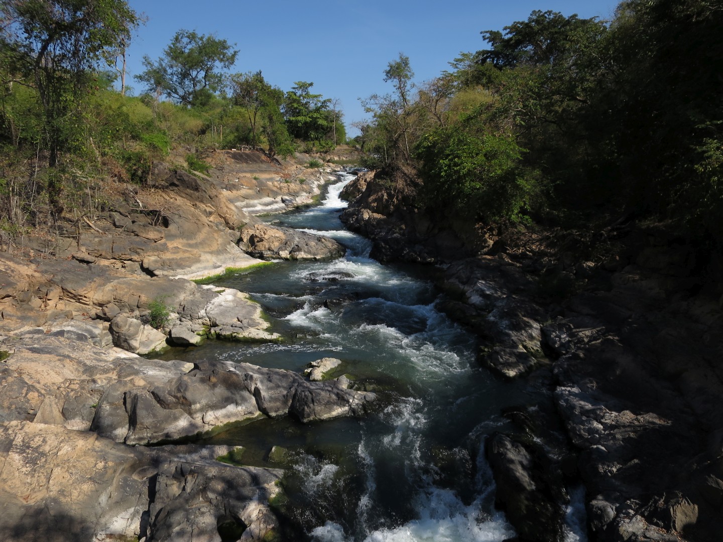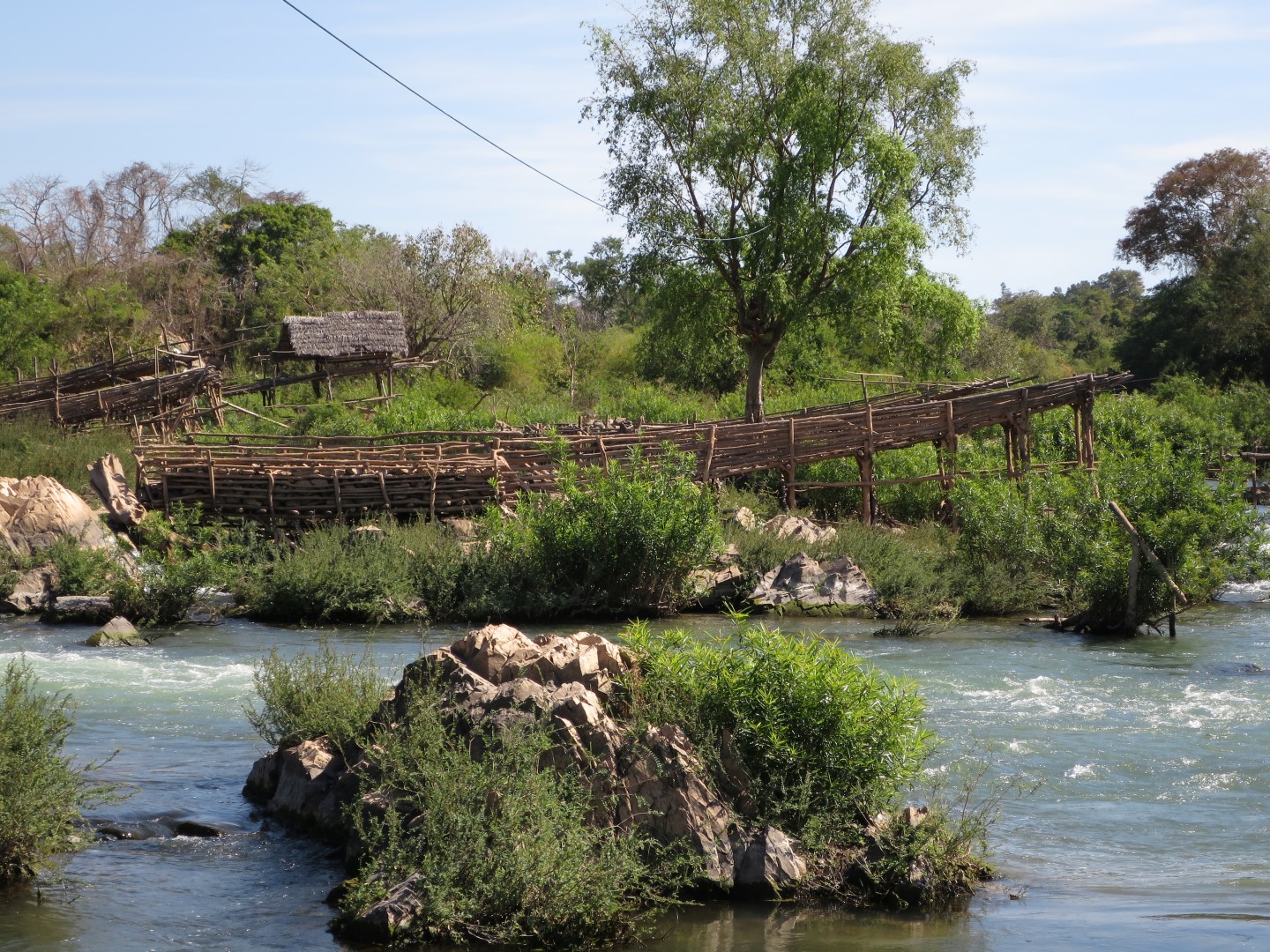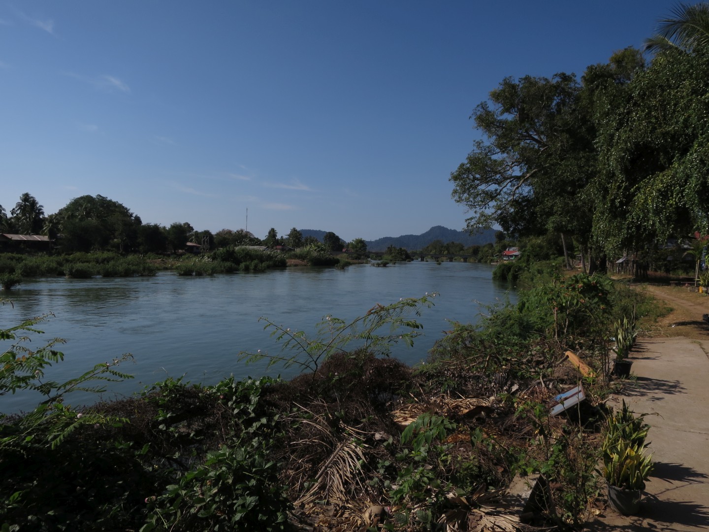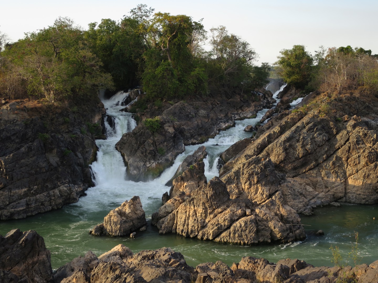 Midva sva v kompletu s obiskom slonov kupila še spanje v visečih mrežah na pokritem balkonu hiške v gozdu in trekking naslednji dan. Ker sva to počela med božičem in novim letom, nas je bilo veliko – okrog 15 pri slonih in okrog 10 na trekingu. Hodili smo po okoliški džungli, ki je čisto drugačna od malezijske džungle – mene je rastlinje bolj spominjalo na savano, ampak mogoče to zato, ker smo bili v bolj sušnem obdobju. Vmes smo se kopali pri enem slapu – glej video spodaj – in si ogledali še enega drugega. Zaključili smo v eni domorodni vasi, ki je precej razočarala, ker je bila veliko bolj moderna, kot v reklami.