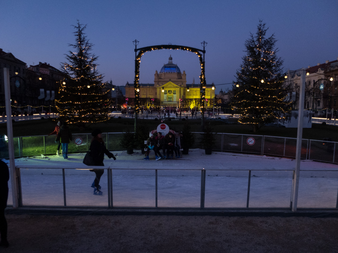 Pred železniško postajo imajo zelo dobro drsališče. En del je normalno drsališče, drugi del je pa enosmeren krog po parku, vključno s krožnim križiščem in klopcami. Želel sem it drsat, ampak sem prepozno ugotovil, kakšen je njihov sistem. Drsališče obratuje eno uro, nato je pol ure pavze in potem spet obratuje eno uro. Karto kupiš samo za eno uro in ko sem se odločil, da bi šel drsat, je bila naslednja ura že razprodana.